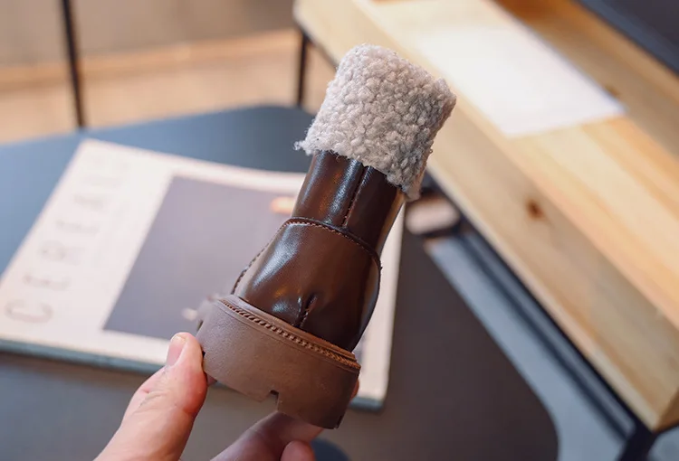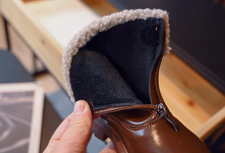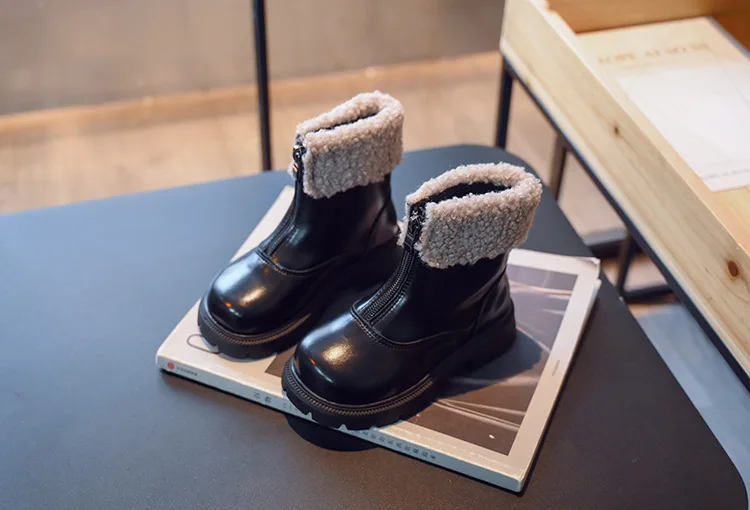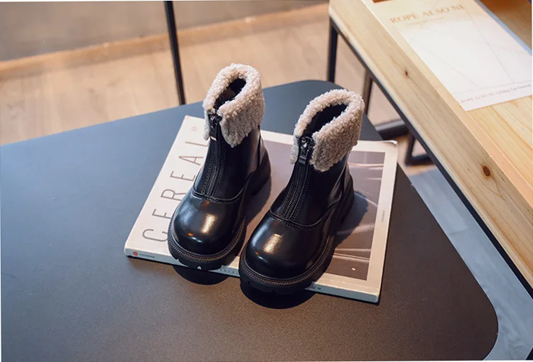 Zip Design Kids Leather Boots for Girls Autumn Winter Plus Thin Cotton Warm Snow Boot Waterproof Children Casual Snow Shoes